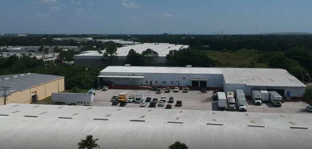 This property is directly behind the front building facing Highway 60 (Adamo Dr.) with addresses 8425-8455 Adamo Drive. There is a front parking lot as well as a back parking lot with dock height loading docks and ramps to ground level. Total land between both buildings on the property is 4.4 acres, mostly paved.