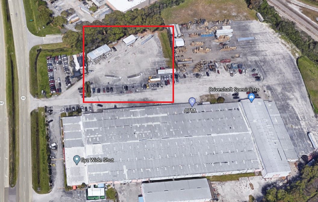 Large 1 acre fenced parking lot on the north side of Highway 60 (Adamo Drive) about 1/4 miles west of US Highway 301 South. Has a single wide working office trailer on the property. Property is fenced in. Traffic count is 60,000 to 80,000 daily.
